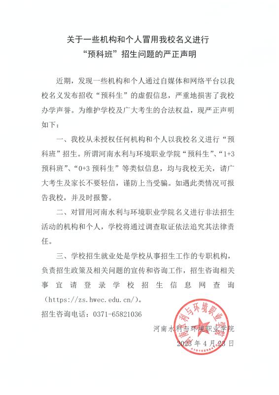 关于冒用我校名义进行“预科班”招生虚假宣传问题的严正声明