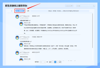 5.“留言板”模块方便考生及家长留言超出系统常见题目范围的问题,可查询部分考生提出的问题或者点击“我要提问”(图4),准确填写相关信息后(图5)由招生办工作人员解答后直接发送至所留邮箱,考生及家长可及时关注邮箱并查收回复。