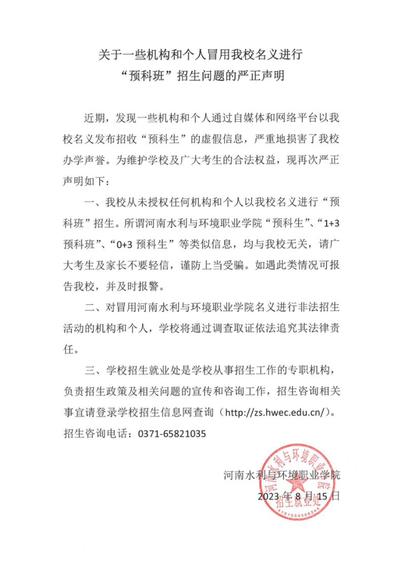 关于一些机构和个人冒用我校名义进行“预科班”招生问题的严正声明