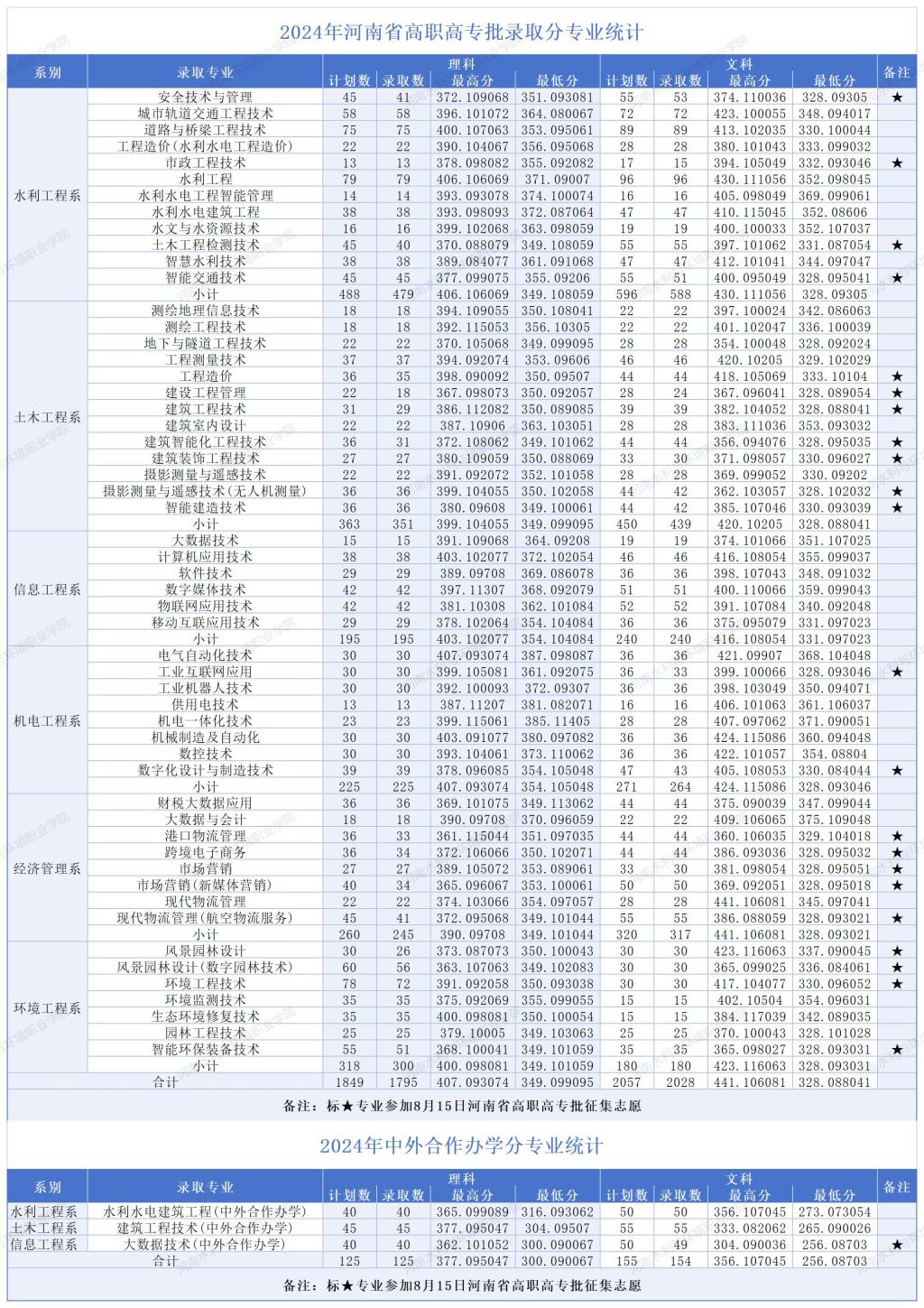 2024年河南省高职高专批录取分专业统计